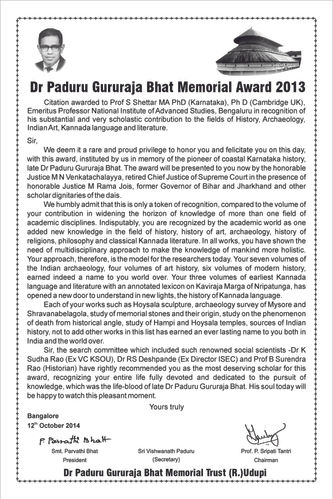 Dr. P. Gururaja Bhat Memorial Award 2013